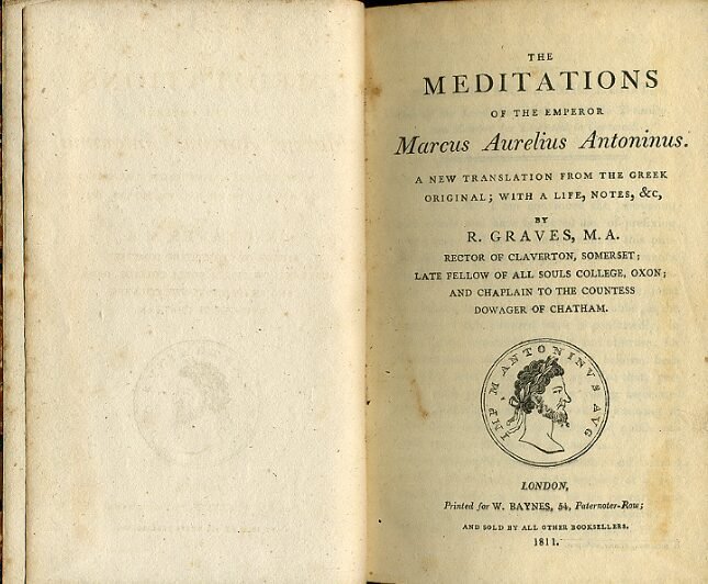 His Meditations remain a timeless testament to his philosophical mind, enduringly profoundly influencing moral thought worldwide through countless generations. Image: First page of the 1811 English translation by Richard Graves