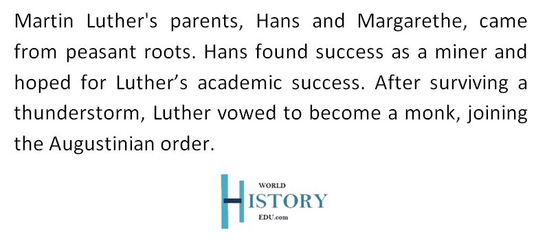Martin Luther was born in 1483 in Eisleben, Saxony, Germany, to Hans, a copper miner, and Margarethe, from a business-oriented family. Despite their humble beginnings, Luther’s parents were determined and ambitious.