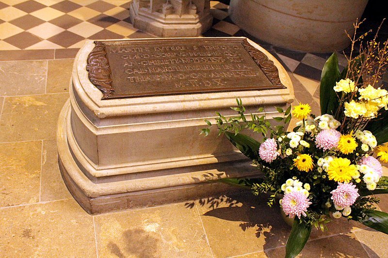 Martin Luther’s grave, Schlosskirche, Wittenberg in today’s Saxony-Anhalt, Germany