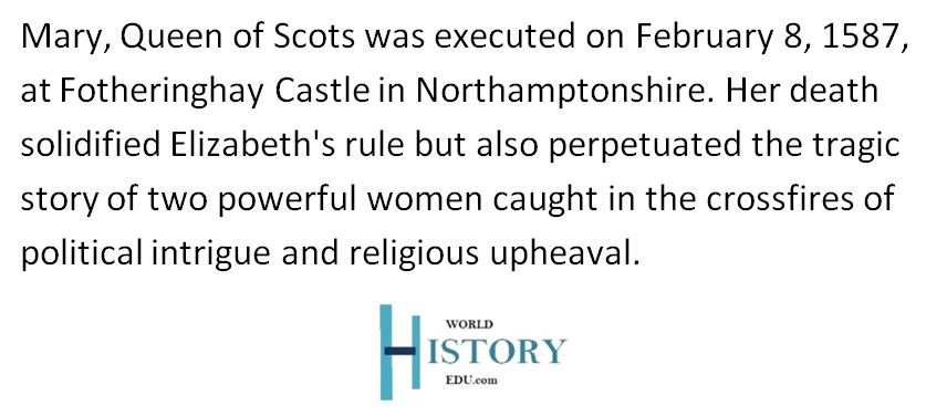 Mary became implicated in several plots to assassinate Elizabeth and place herself on the English throne. The most notable of these was the Babington Plot. As a result of her involvement, she was tried and found guilty of treason, leading to her execution on February 8, 1587.