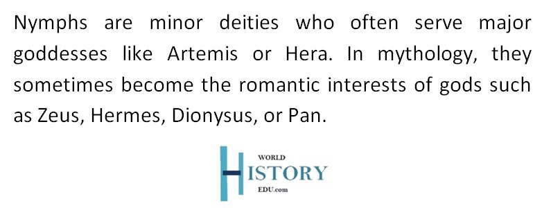 Unlike gods and goddesses who are more powerful and revered, nymphs are considered minor females deities or spirits.