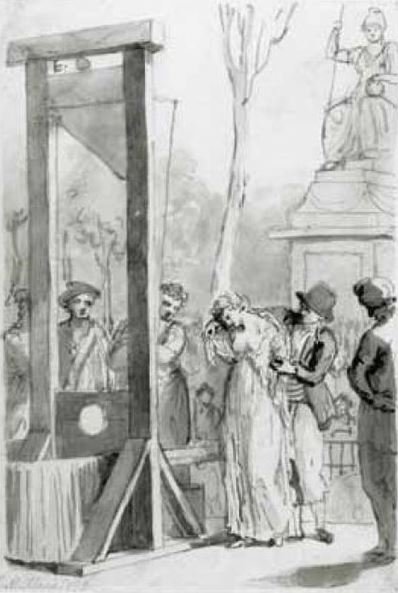 An illustration showing Olympe de Gouges being executed.