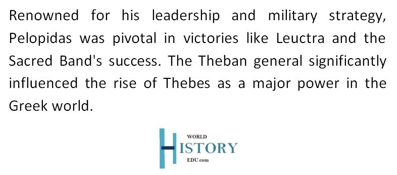 In 371 BC, Pelopidas led the Sacred Band in a decisive charge during the Battle of Leuctra, helping Epaminondas defeat the Spartans. This victory ended Spartan hegemony and established Theban dominance in Greece.