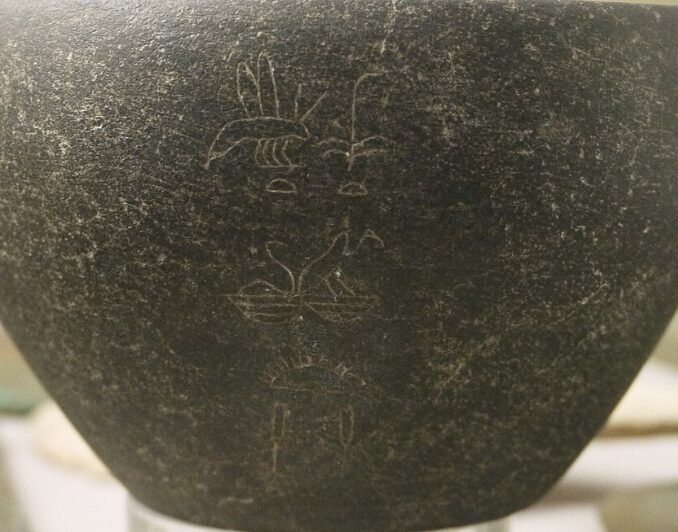 Stone vase inscribed with Khasekhemwy’s titles, housed at France’s National Archaeological Museum.