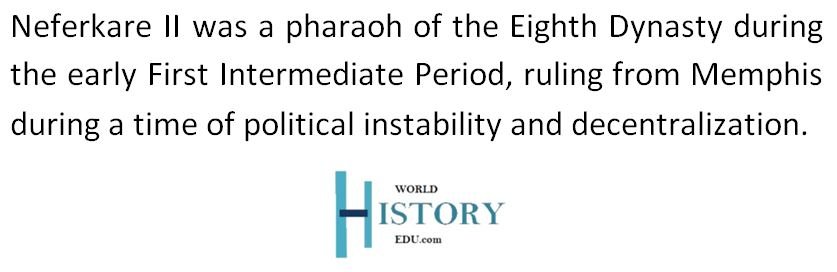 Neferkare II was a little-known pharaoh of ancient Egypt who ruled during the tumultuous early First Intermediate Period (c. 2181–2055 BC). As a ruler of the Eighth Dynasty, he would have reigned from Memphis, Egypt’s traditional capital, during a time of political fragmentation and declining central authority. Scholars, including Jürgen von Beckerath and Darell Baker, identify him as the third ruler of this short-lived dynasty. However, due to the scarcity of contemporary sources, much of what is known about Neferkare II is derived from later king lists and scholarly interpretations.