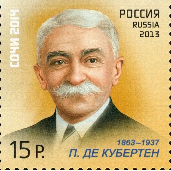 Russian postage stamp of Pierre de Coubertin