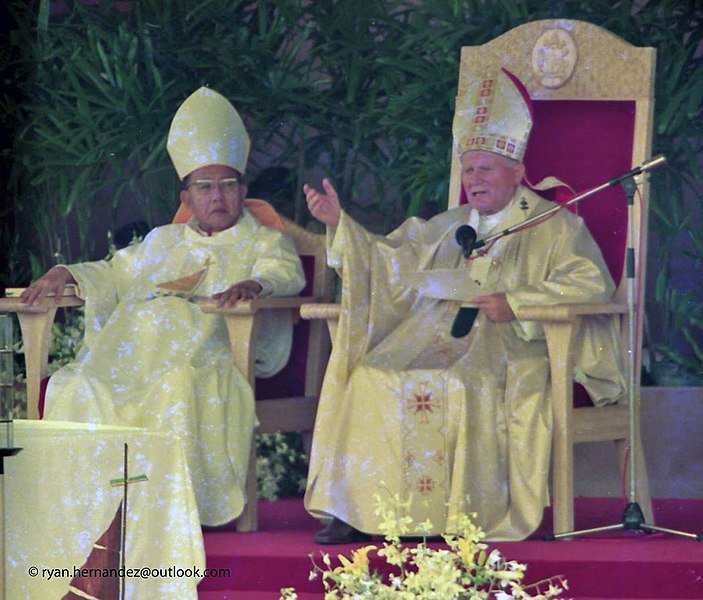 Pope John Paul II and Cardinal Jaime Sin addressing the crowd at Luneta Park, 1995.
