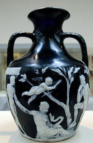 The Portland Vase is a Roman glass amphora dating from the late 1st century BCE to the early 1st century CE. It is famous for its intricate cameo-glass technique and detailed scenes carved in high relief.