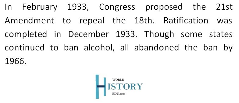 - State and Local Repeals – Following the passage of the 21st Amendment, individual states and localities took steps to repeal their own prohibition laws and regulate the sale of alcohol.