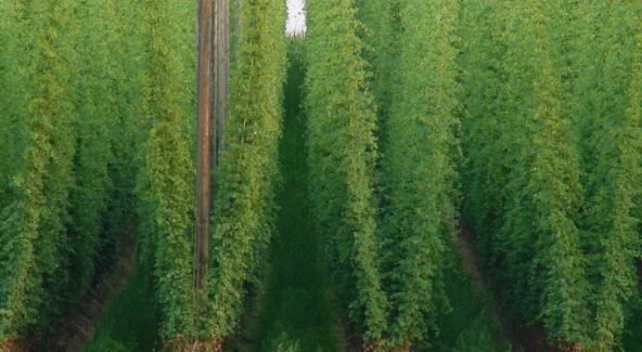 Some brewers argue that the purity law leads to uniformity in beer flavors and styles, discouraging innovation and favoring industrial-scale production over artisanal brewing. Image: Hop yard in Germany