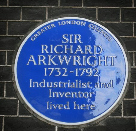 In recognition of his contributions, Arkwright was knighted in 1786 and served as the High Sheriff of Derbyshire. He continued to expand his business empire, building factories in various locations, including New Lanark, Manchester, and Matlock Bath. Image: Richard Arkwright’s Blue plaque in Adam Street, London.