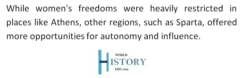 Athenian women were confined to the home and controlled by male guardians. Spartan women, by contrast, had more freedoms, including physical training, property ownership, and the ability to drink wine.