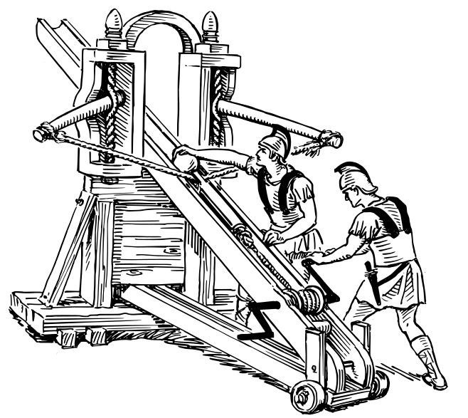 An illustration depicting an onager or stone thrower.