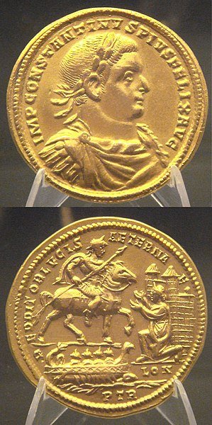 Christian traditions, particularly those recorded by Eusebius and Lactantius, depict Constantius as sympathetic to Christianity. Later medieval legends mistakenly identified him with British figures, including King Coel and Saint Helena, portraying him as a British king who married Helena and fathered Constantine in Britain. These stories, though historically inaccurate, contributed to the medieval British claims of a Roman heritage.
