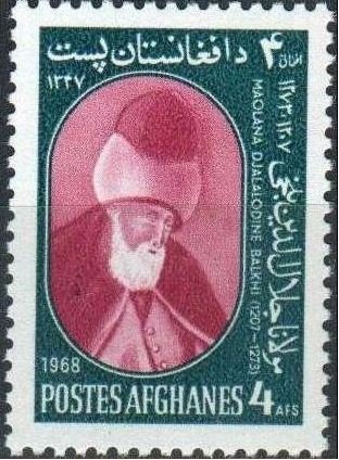 A 1968 Afgan stamp featuring Rumi
