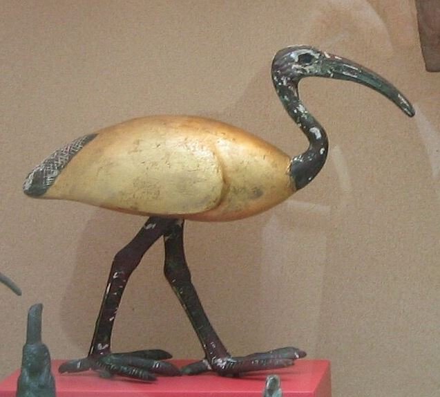 The bird was sacred to Thoth, the god of wisdom and writing. It was commonly mummified and offered in vast numbers at temples as a votive sacrifice. This practice continued for centuries until the Roman period.