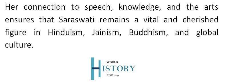 In the Vedic tradition, Saraswati was initially associated with the Sarasvati River, worshipped as a river goddess. Her role was connected with purifying and nurturing fertility through water.