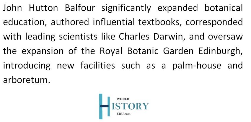 John Hutton Balfour authored numerous textbooks, including Manual of Botany and Elements of Botany for Schools, making botanical education more accessible.