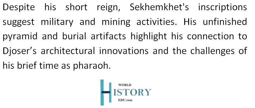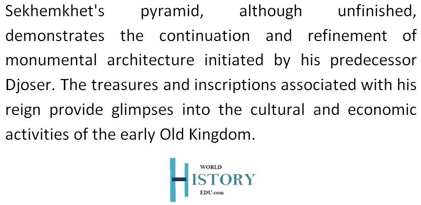 Sekhemkhet’s unfinished pyramid and scant archaeological record may indicate an untimely death, which cut short his ambitions and left many of his projects incomplete.