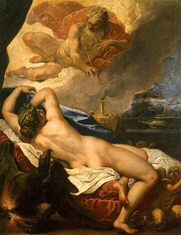 Jove and Semele (1695) by Italian painter Sebastiano Ricci. Galleria degli Uffizi. Florence