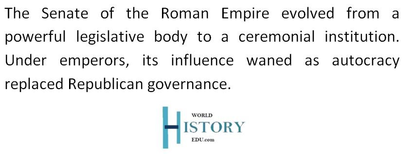The Senate of the Roman Empire was a central political body that evolved significantly from its origins in the Roman Republic. Following the fall of the Republic, power shifted towards the Emperor, reducing the Senate’s influence to a primarily advisory and ceremonial role. Despite this decline, it remained a prestigious institution, symbolizing continuity and tradition within the Roman state. Below, World History Edu explores its evolution, procedures, powers, and eventual decline.