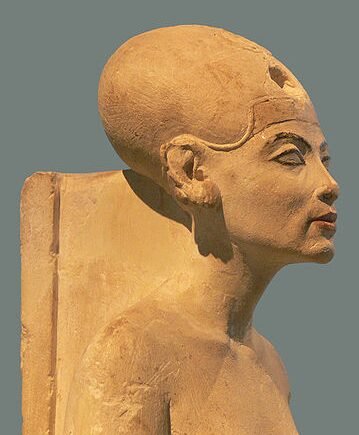 The hole atop the head suggests a missing uraeus, a symbol of royalty, indicating Nefertiti’s high status as a queen.