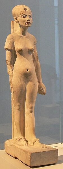 Image: The Standing Figure of Nefertiti is a limestone sculpture of Queen Nefertiti, created around 1350 BC.