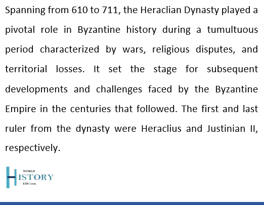 The Heraclian Dynasty, also known as the Heraclian Dynasty, was a Byzantine imperial dynasty that ruled the Byzantine Empire from 610 to 711 AD.