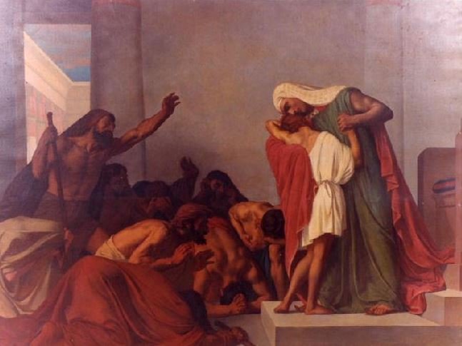 An artwork entitled “Joseph Recognized by His Brothers” depicts the story of Joseph.