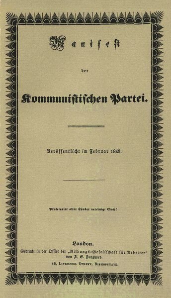 The first edition of “The Communist Manifesto” was published in German under the title “Manifest der Kommunistischen Partei” in 1848.