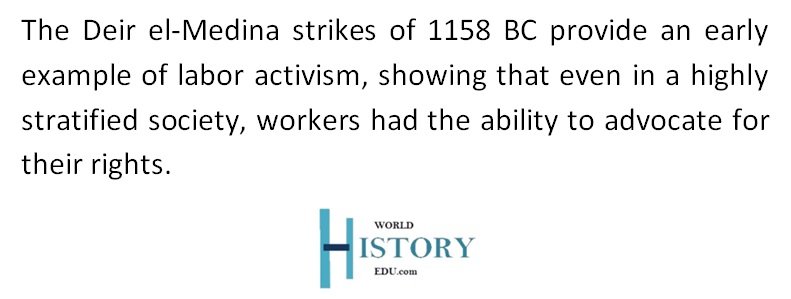 The Deir el-Medina strikes were groundbreaking as they marked the first documented instance of collective labor action in history. They set a precedent for organized protest and demonstrated that workers, even in a rigidly hierarchical society, could leverage their collective power to demand fair treatment.