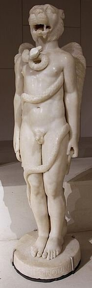 The lion-headed figure from the Sidon Mithraeum is often interpreted as a Mithraic depiction of Arimanius.