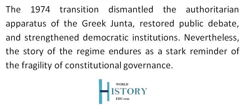 Many Greeks saw these efforts as cosmetic. Underlying tensions continued to simmer, especially among students and intelligentsia. Despite minor liberties, Papadopoulos’s control over security forces and the judiciary guaranteed that the regime’s authoritarian framework remained firmly in place.
