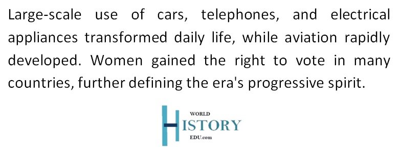 Other technological advancements included the widespread use of electricity, which powered homes and industries, and innovations in communication and entertainment. The radio became a crucial medium, bringing news, music, and entertainment into homes across the country, thus reshaping how people experienced the world. Silent films also became a major cultural force, with Hollywood emerging as the global center of the entertainment industry.