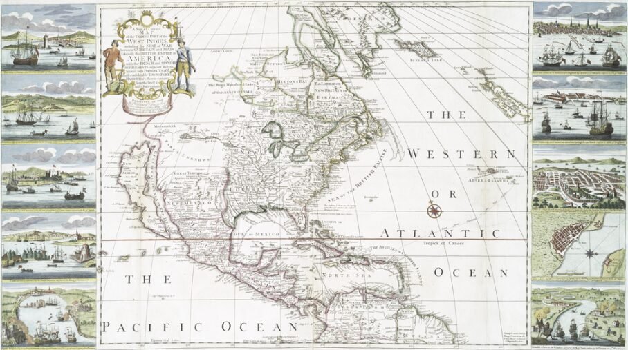 Beyond the Caribbean, there were smaller skirmishes in Florida, Georgia, and Havana, but after 1742, the war gradually merged into the larger War of the Austrian Succession, involving most of Europe’s major powers. The conflict officially ended in 1748 with the Treaty of Aix-la-Chapelle, which largely restored the pre-war conditions. Image: Trade map of the West Indies and North America during the war, 1741
