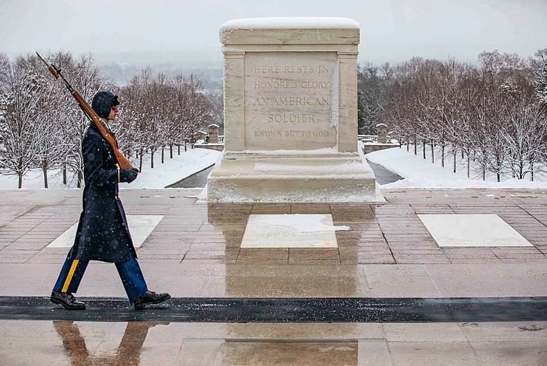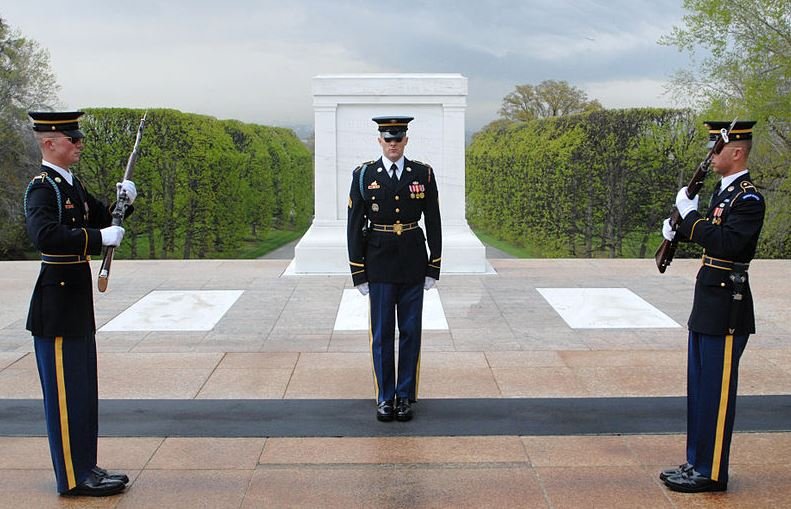 The white marble sarcophagus that marks the tomb is one of America’s most revered symbols of military sacrifice. The tomb is guarded continuously by a soldier from the U.S. Army’s 3rd Infantry Regiment, “The Old Guard,” with the Changing of the Guard performed every hour (or half-hour during specific times of the year).