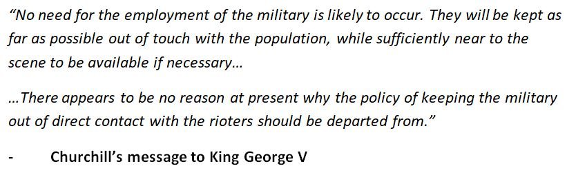 Churchill’s correspondence with King George V emphasized reliance on police, not military force, to maintain order, debunking claims of military aggression against miners.