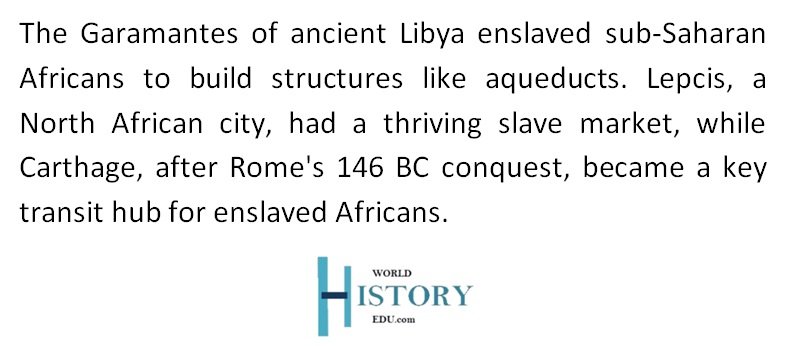 For the Garamantes, who were ancient Greek pastoralists that had settled in modern-day Libya, they relied heavily on enslaving people from sub-Saharan Africa. They used these slaves to build many massive structures, including aqueducts.