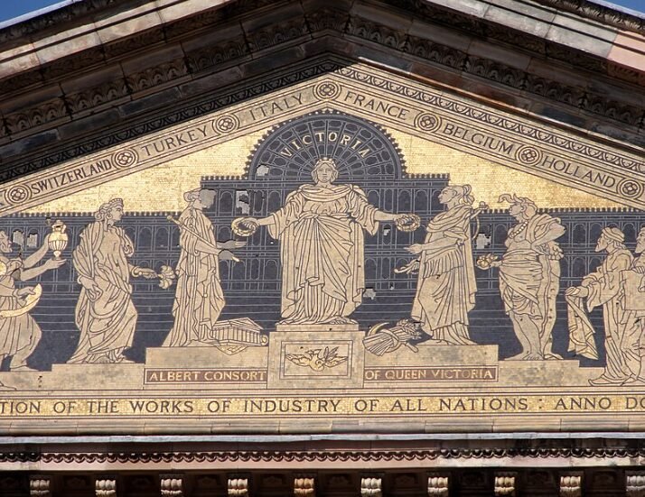 Frieze detail from internal courtyard showing Queen Victoria in front of the 1851 Great Exhibition