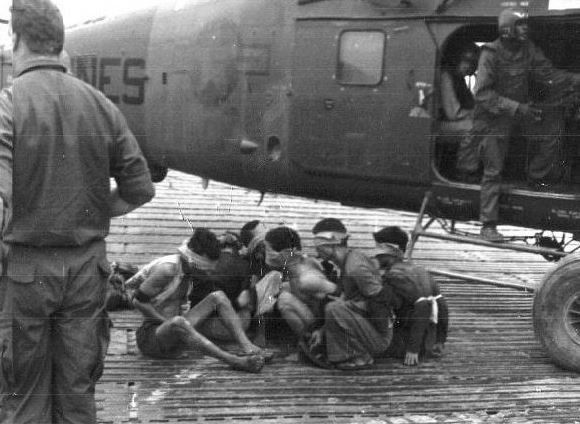 Some members of the Viet Cong army being captured by the US army.
