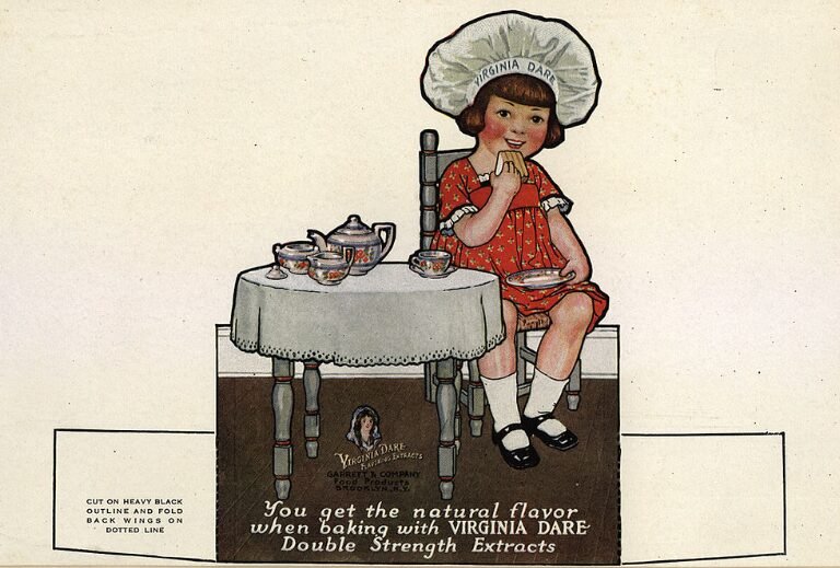 Over the past 400 years, Virginia Dare has become a legendary figure in American folklore, symbolizing various ideals for different groups. She has appeared in numerous works of literature, songs, comic books, television shows, and films. Image: Virginia Dare Flavoring Extracts