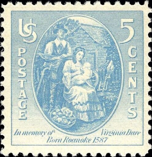 Image: A U.S. postage stamp was issued in 1937 to commemorate the 350th anniversary of Virginia Dare’s birth.