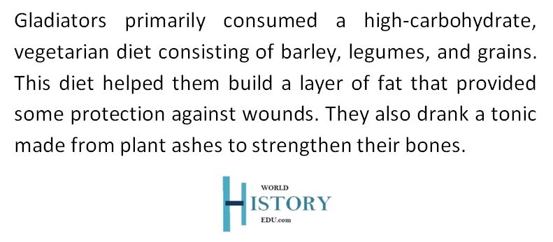 Meat consumption in ancient Rome was often associated with wealth and higher social status. Gladiators, being slaves or lower-class citizens, had limited access to meat.