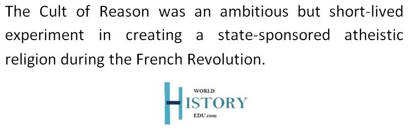 The Cult of Reason was France’s first state-sponsored atheistic religion during the French Revolution, designed to replace Roman Catholicism with a civic religion focused on Reason, Liberty, and the Revolution.