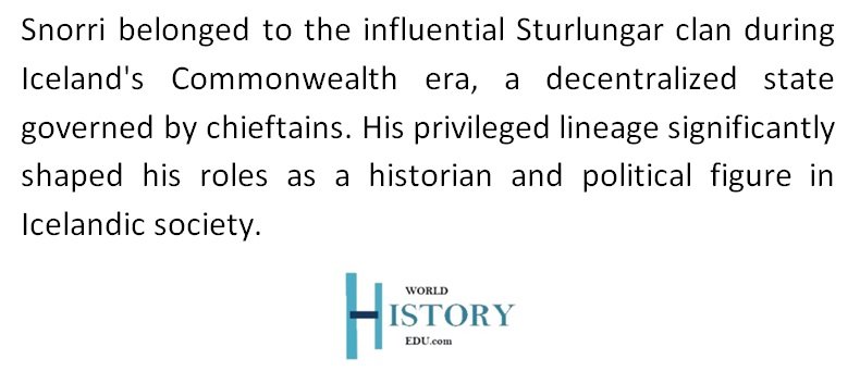 Snorri was part of the prominent Sturlungar clan, which held considerable wealth and influence during the period of the Icelandic Commonwealth.