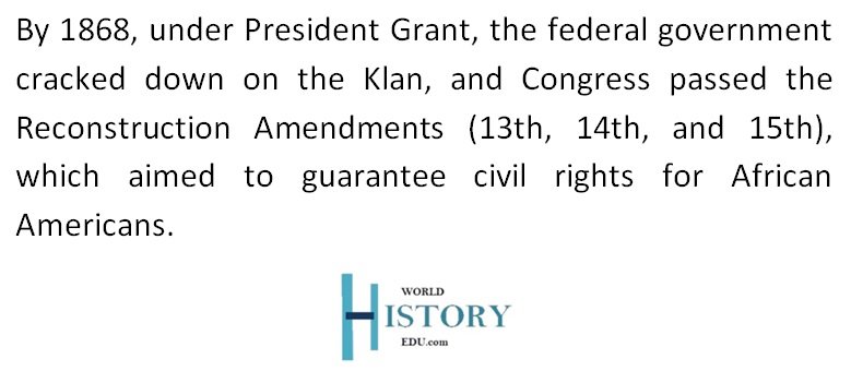 The Ku Klux Klan (KKK) and other groups used violence and intimidation to maintain white supremacy and prevent African Americans from exercising their newly granted civil rights. These groups targeted African Americans and Republicans, weakening the gains made during Reconstruction.