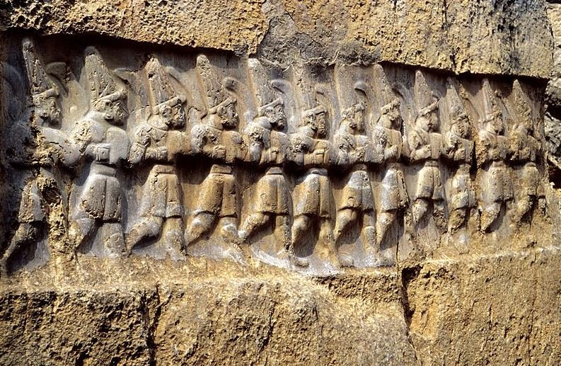 Hittite relief from Yazılıkaya sanctuary shows twelve underworld gods, linked to Mesopotamian Anunnaki.