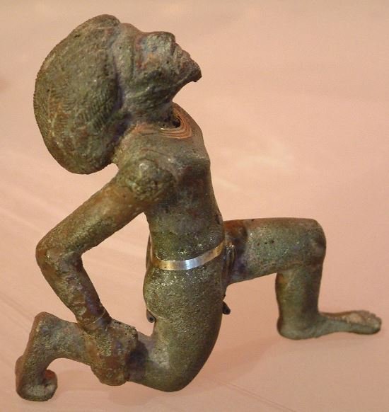 A small ancient Egyptian sculpture portraying a Libu Berber figure from the era of Rameses II, 19th Dynasty (1279–1213 BCE). Its housed in the Louvre, Paris.