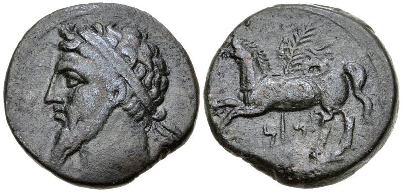 A map showing various Berber kingdoms in Numidia around 220 BC—Masaesyli ruled by Syphax (green), Massyli under Gala, Masinissa’s father (gold), with Carthage located to the east.