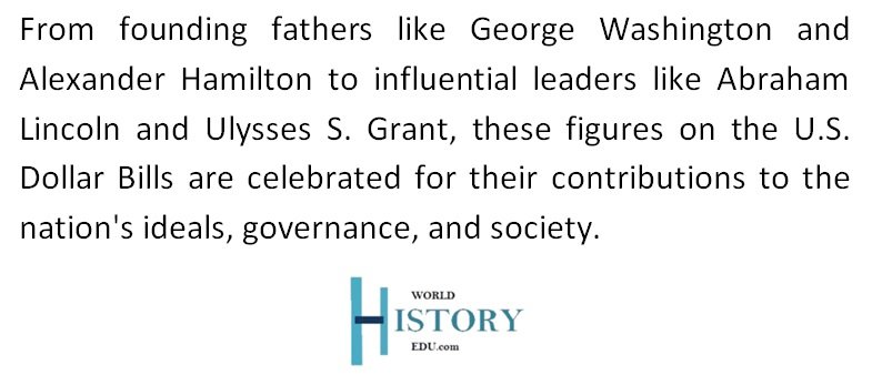 The selection of these figures for U.S. currency reflects a recognition of their impact on American history and values. The portraits chosen are meant to honor the principles of leadership, innovation, and dedication to the nation’s founding ideals. The designs and individuals featured on U.S. currency have evolved over time, with various redesigns for security and aesthetic reasons.